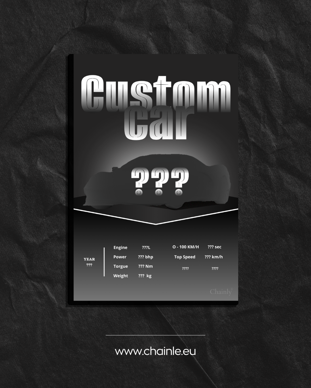 Neomezujte se jen na naši nabídku – s produktem Custom Car vám připravíme prémiový plakát přesně podle vašich představ. Ať už jde o vysněný supersport, klasického veterána nebo váš vlastní vůz, vytvoříme originální design, který nikdo jiný mít nebude.